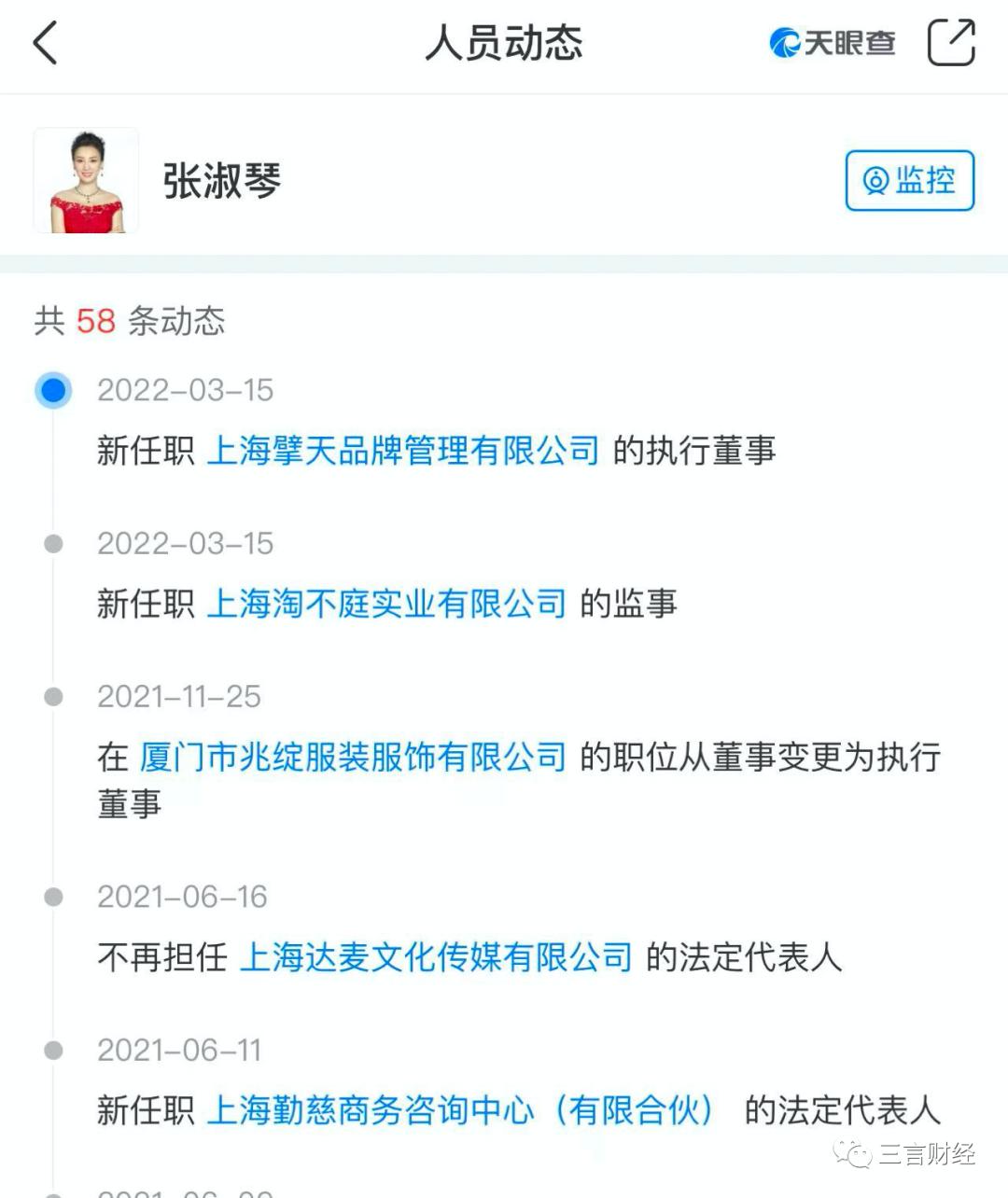 而张庭今年以来新任职了上海淘不庭实业有限公司的监事和上海擘天品牌管理有限公司的执行董事。