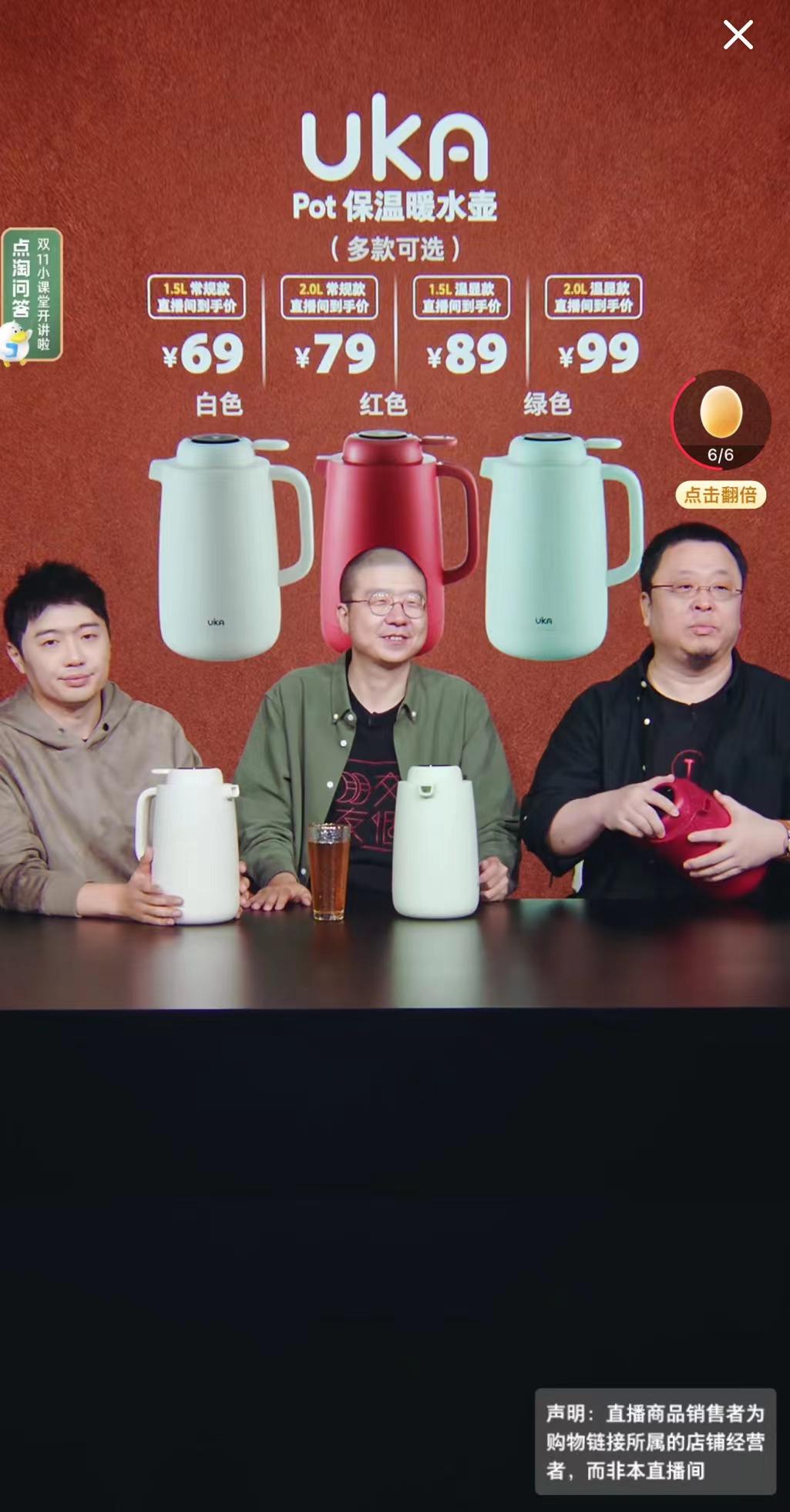 根据交个朋友的官方预告,今年双11期间,罗永浩会以“代言人”角色参与6场淘宝直播,其他时间由交个朋友直播团队完成。总体来看,不管是选品还是直播的内容模式,都跟抖音直播没什么区别。