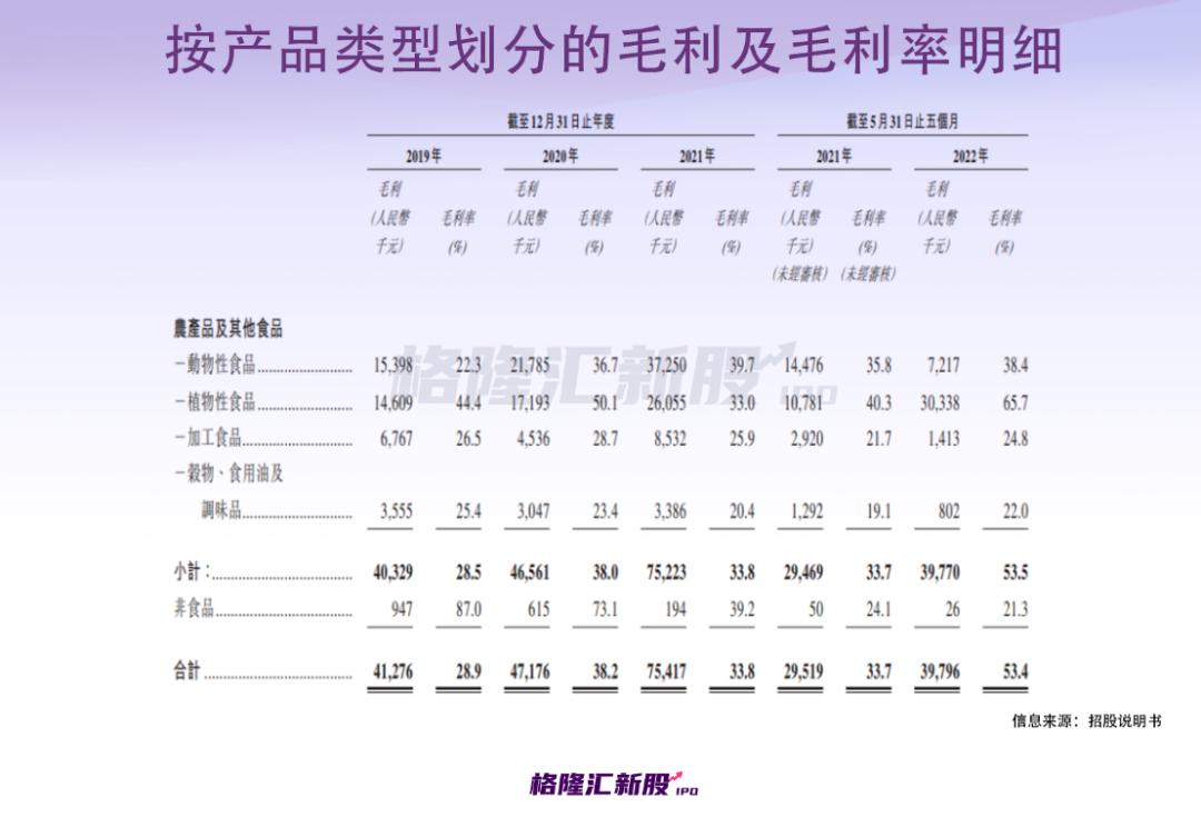 目前,其农产品及其他食品组合超过4100款产品,主要分为:动物性食品、植物性食品、加工食品、谷物、食用油及调味品。按产品类型划分,报告期内,动物性食品及植物性食品的销售额合计占乓乓响毛利的最大份额。