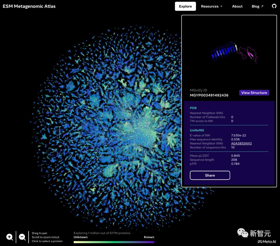 Meta打造首个「蛋白质宇宙」全景图,用150亿参数语言模型,预测了6亿+蛋白质结构