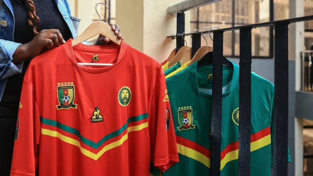 ▲喀麦隆当地的店铺中仍然陈列着Le Coq Sportif品牌的球衣。