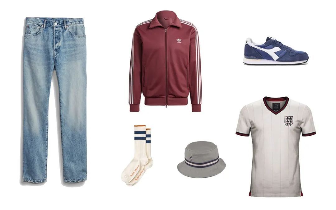 这个世界杯年,在社交媒体和潮流媒体的助推下,blokecore成为了一个新的高频出现的词语。bloke在英国俚语里可以理解成“老哥”,core是“核”,简单粗暴翻译就是彰显男性气概得“硬核老哥”风。上个世代英国硬核老哥的穿搭元素,少不了足球衫、直筒牛仔裤和磨损的阿迪达斯运动鞋。这套衣服看起来不起眼,但这正是blokecore的灵魂所在。