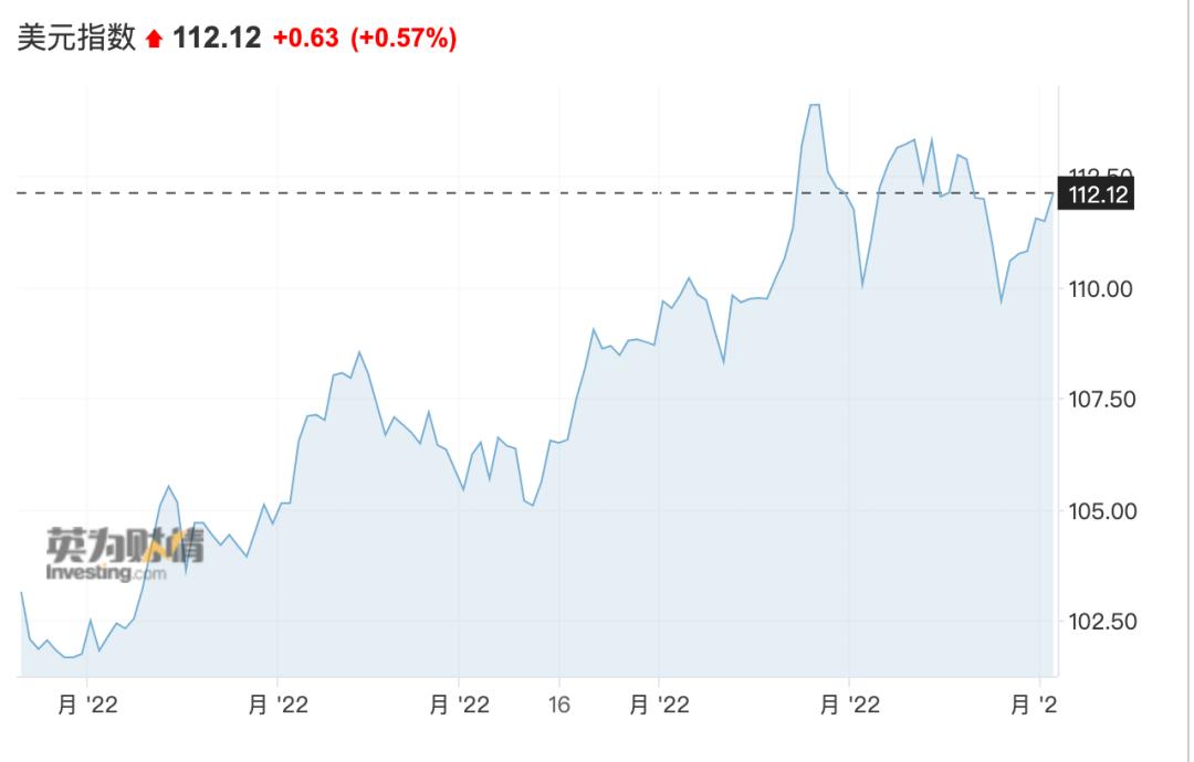 美元指数基本抹去日内跌幅,重回111上方涨至112.12,涨幅扩大至0.57%。