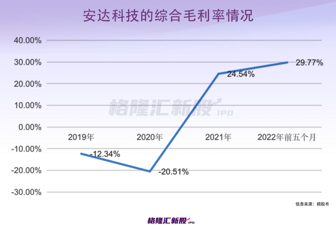 报告期内,安达科技的综合毛利率分别为 -12.34%、-20.51%、24.54%、29.77%,主要受公司产线技改、上游原材料价格波动等因素影响,存在明显的波动。