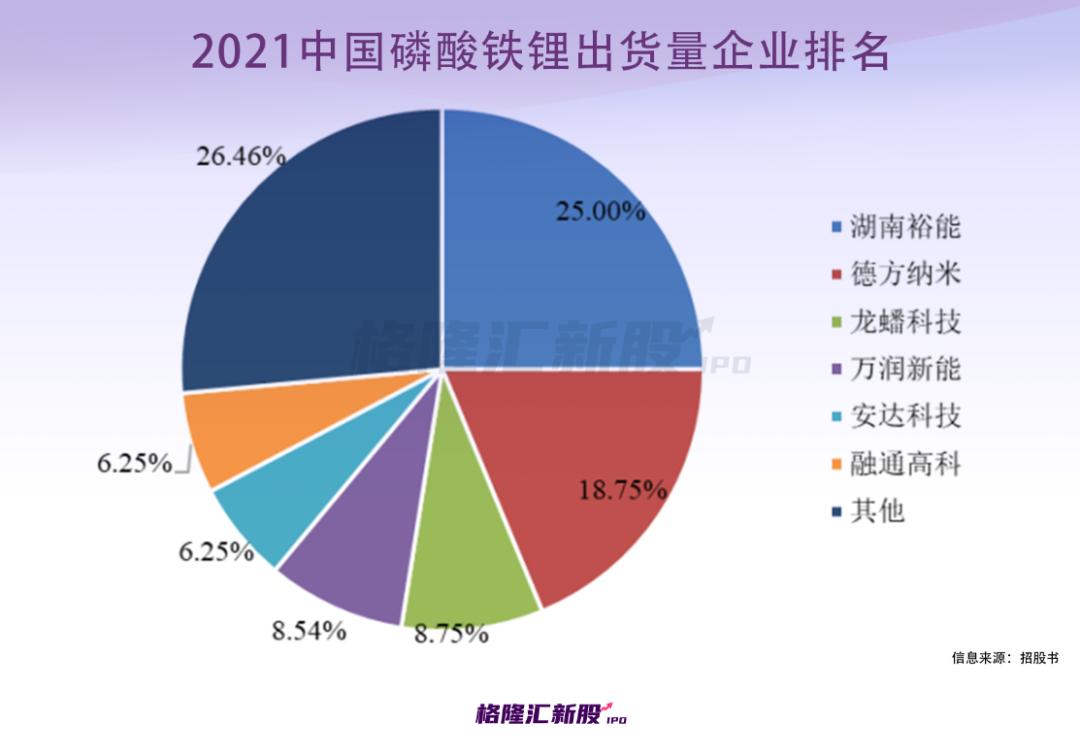 目前,我国磷酸铁锂正极材料的市场需求快速上升,行业整体集中度较高。根据高工锂电数据,2021年磷酸铁锂出货量排名前六的企业分别为湖南裕能、德方纳米、龙蟠科技、万润新能、安达科技、融通高科,市场占有率合计约为73.54%。其中,安达科技的市场占有率约为6.25%。