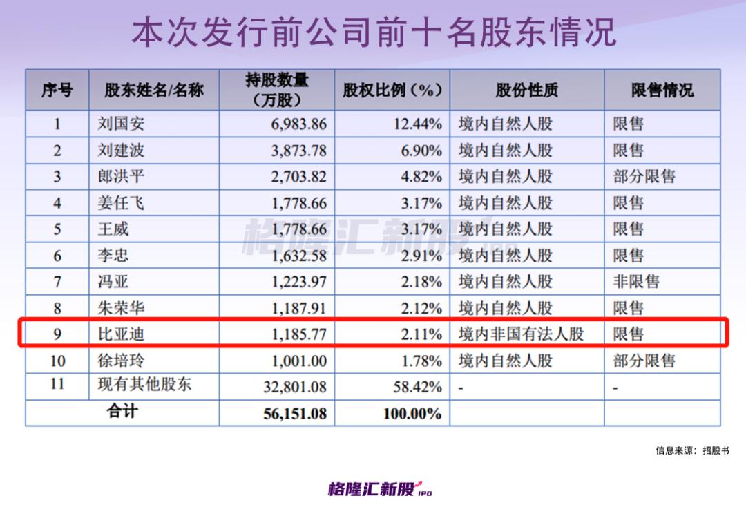 具体来看,2021年3月,公司与比亚迪签署《战略合作协议》;2021年4月,安达科技公告定增计划,拟募资3.54亿元,发行价格为2.53元/股,当时比亚迪出资3000万元进行认购,发行完成后,比亚迪持有公司2.11%的股份,如今成为第九大股东。