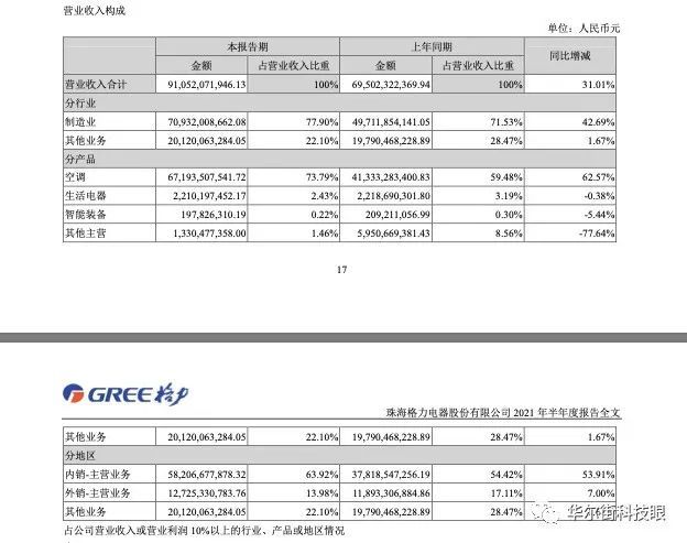 其次是格力缺乏想象空间。实际上,格力电器自我定位为“多元化、科技型的全球工业集团,产品覆盖家用消费品和工业装备两大领域 ”,但从第二季度公布的营收分布可以看出,空调业务在营收规模中的占比目前为72%。空调的营销占比在减小,但除空调外,还未诞生其他现金牛业务。