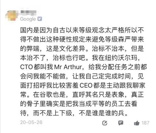 互联网企业选择“起花名”的初衷是为了去除官僚化。但是,仅仅通过“起花名”真的能去除官僚化吗?穆胜咨询在社交平台上也发现了一些有意思的评论。