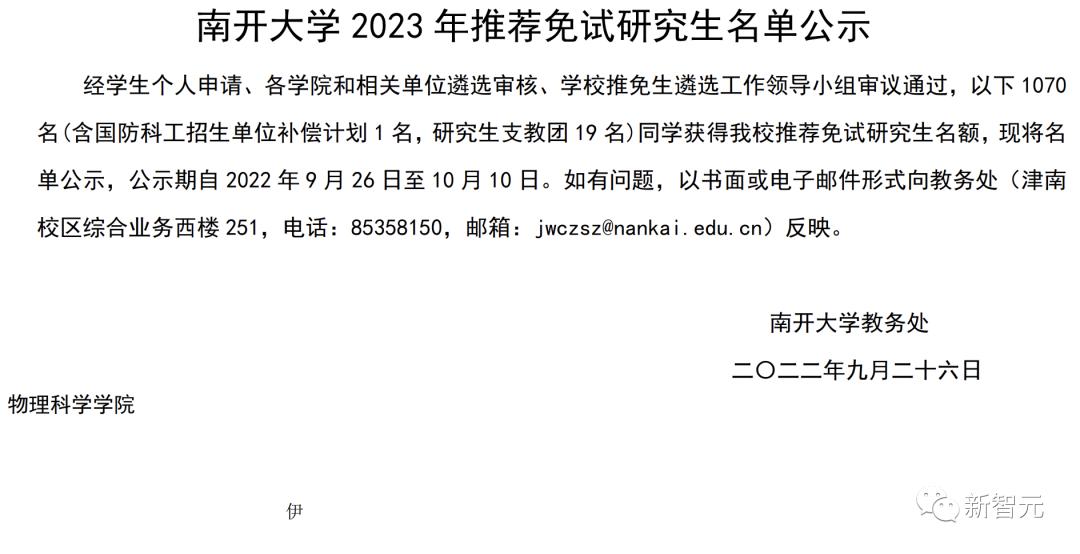同时,在「南开大学2023年推荐免试研究生名单公示」中也可以找到他的名字。