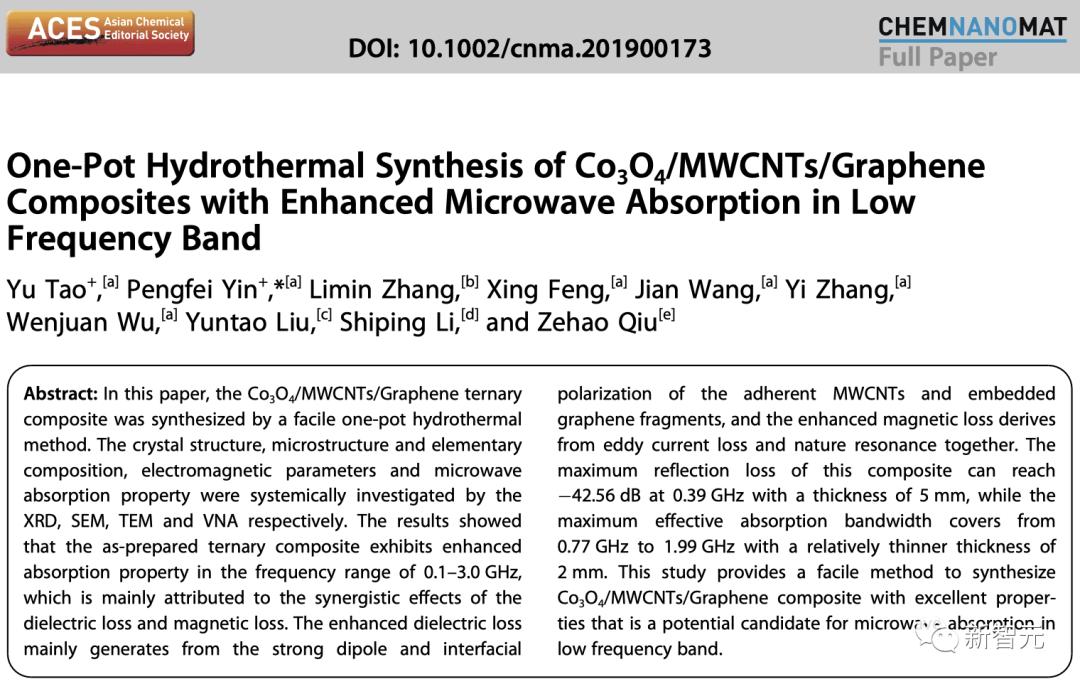 Ruin-TY发表在《ChemNanoMat》上的论文题为《三元纳米复合材料的一步水热法制备及低频吸波特性研究》。《ChemNanoMat》由亚洲化学编辑学会发行,是一本SCI期刊。