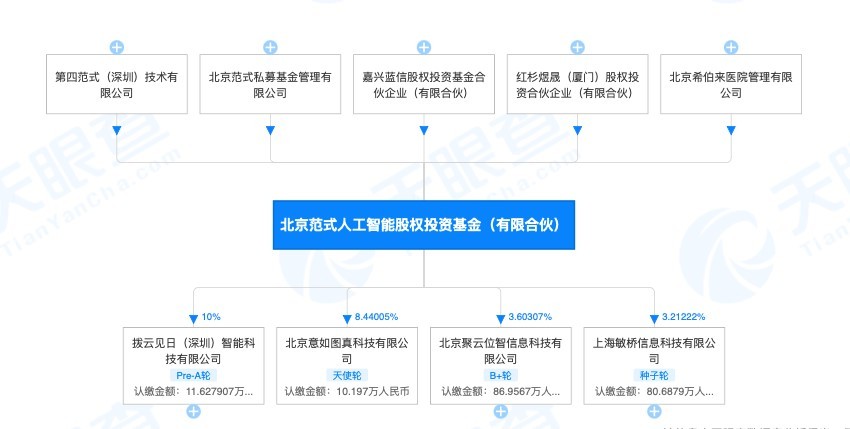 由基金名称就可以看出,范式基金有着明显的第四范式的公司痕迹。出资人当中,除了第四范式(深圳)技术有限公司外,还有公司创始人戴文渊参与的北京范式私募基金管理有限公司。