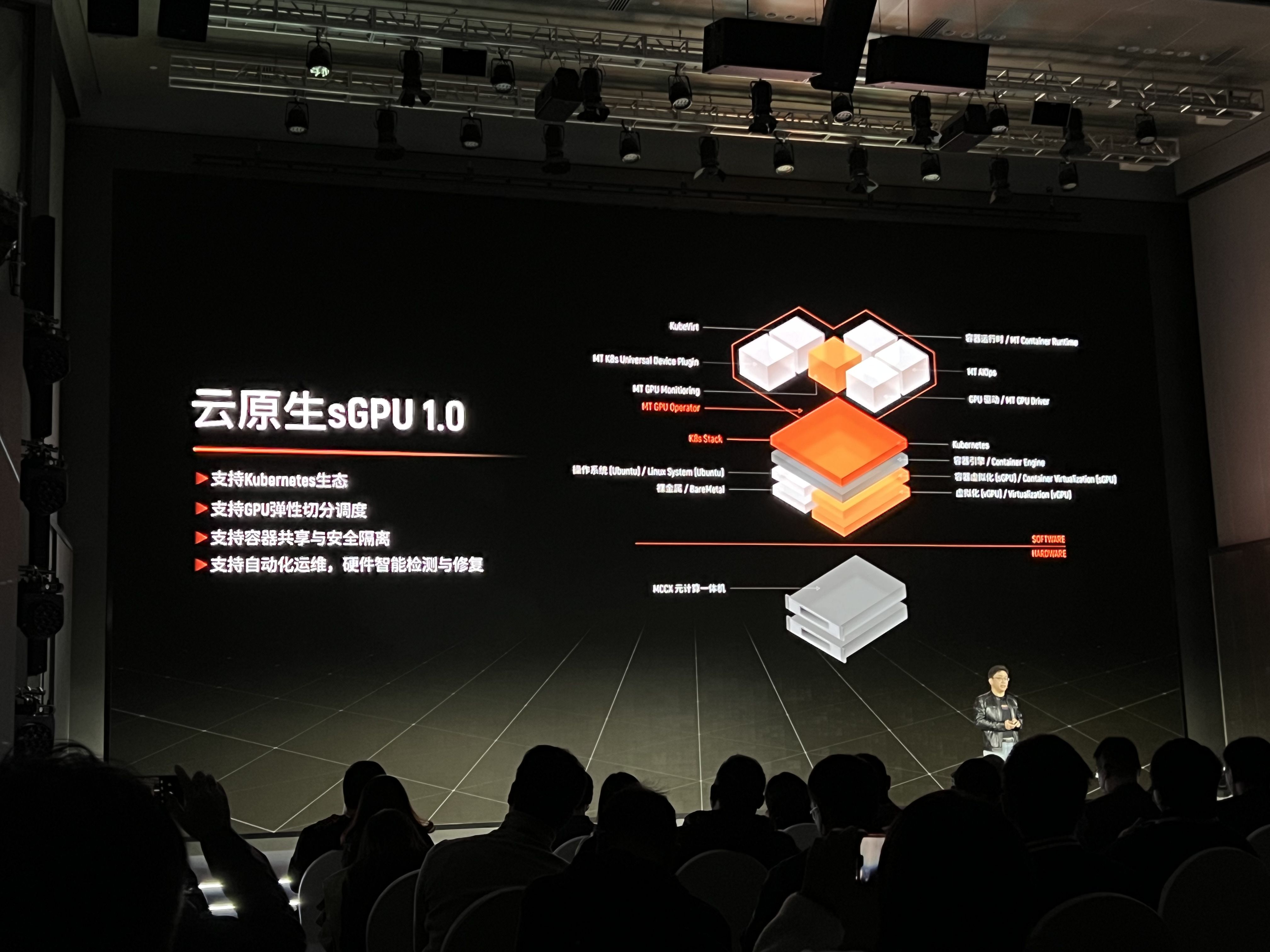 其中,首款容器化技术云原生sGPU 1.0,支持Kubernetes生态、GPU弹性切分调度、容器共享与安全隔离,以及支持自动化运维,硬件智能检测与修复,可广泛应用于云桌面和云游戏场景。