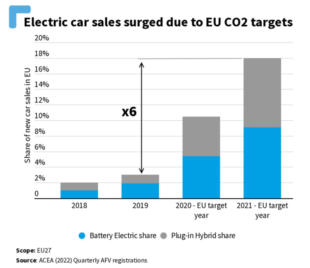 多方因素影响下,目前欧洲电动车渗透率快速提升,根据2021年的统计,电动车市场占比达到近20%(中国2022年的数据是23.5%),为两年前的6倍。