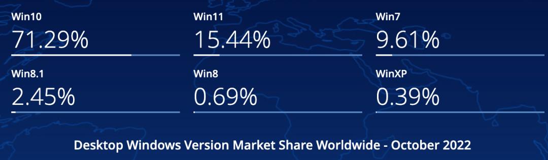 Statcounter 发布的月度报告称,Windows 11 在 2022 年 10 月增长了 1.83 个百分点,从 13.61% 上升到 15.44%。尽管每月都保持着不错的增长,但不足以达到微软的期望值。