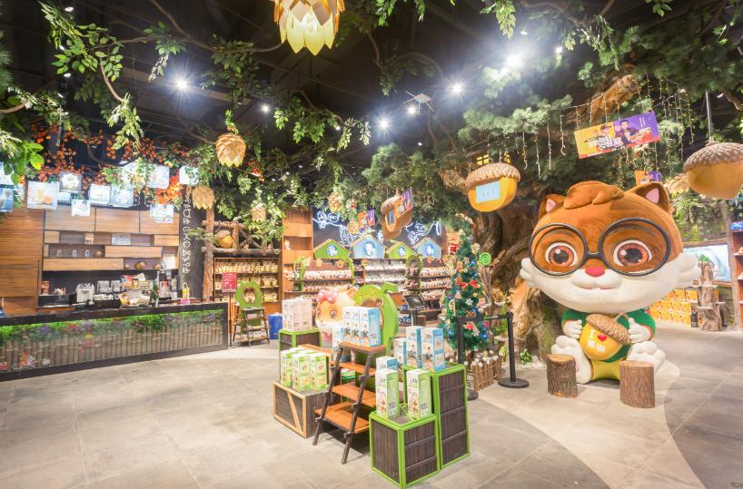 因此, 三只松鼠开始大举向线下扩张。早在2016年9月,三只松鼠就在芜湖江城金鹰新城市广场开出了全国首家投食店,彼时萌感十足的IP形象,森林元素的装修风格,吸引了众多消费者打卡。据了解,投食店采用直营模式,选址高线城市及核心商圈,平均店铺面积200平方米。