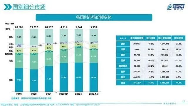 另一边,逐渐淡出中国市场的韩系车日子更不好过。数据显示,1-4月韩系车在华销量仅为11万台,同比下降43.3%。与此同时,韩系车在中国市场份额跌破2%,达到历史冰点。