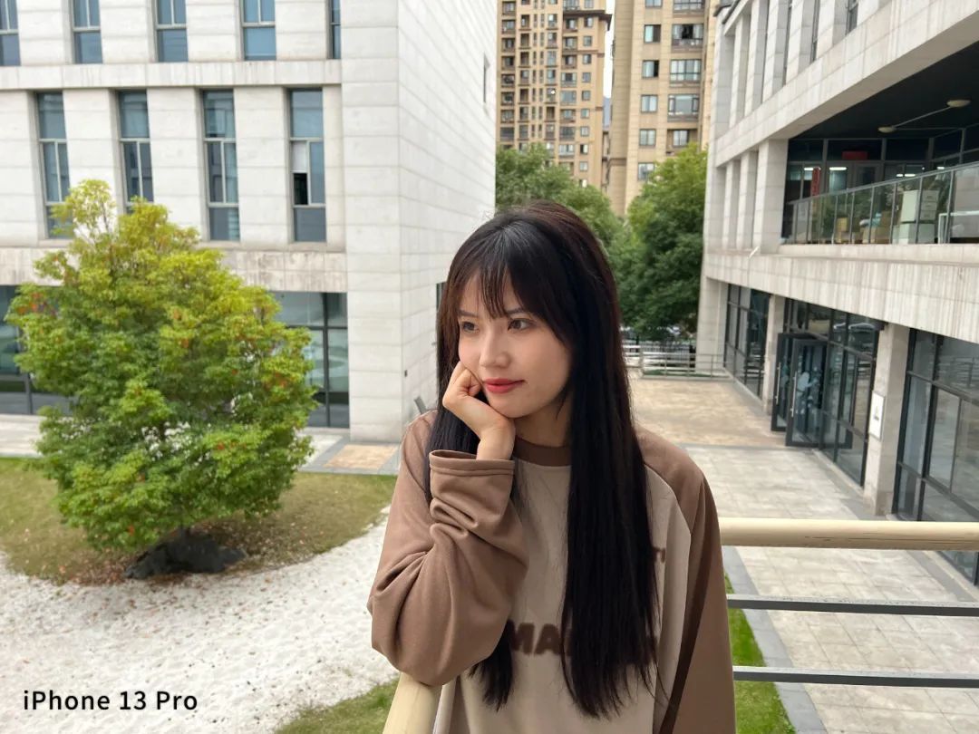 人像方面,默认拍摄模式下,几台手机拍出的效果都不差,但还是 iPhone 的肤色控制的最为真实。