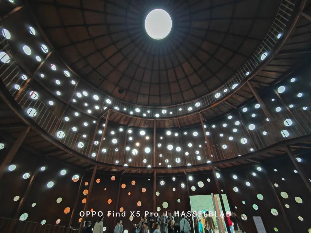别的手机在这个场景下,多少都有光线穿过 洞口过曝溢出的情况,蓝绿厂和小米的做法是把整体提亮,iPhone 则是在努力维持光线不溢出,保持了暗部的亮度。