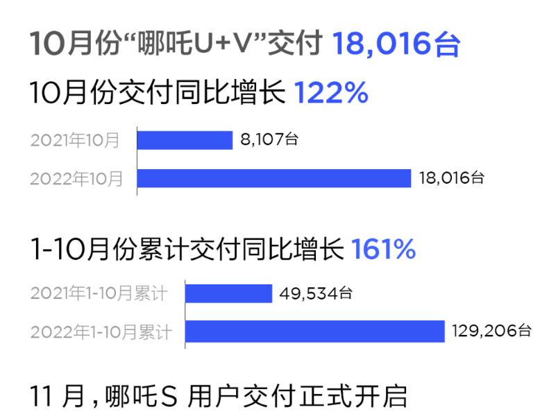 今年前10个月,哪吒累计交付了129206辆新车,较去年同期增加161%。