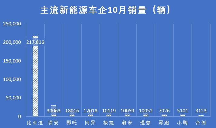 结合市场大盘和新能源汽车品牌的内部竞争来看,10月份的销量格局,显现出两个明显的特征。