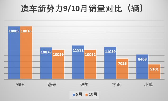 而在10月新能源汽车销量前五的车企中,极氪、问界跃然居上,造车新势力仅剩哪吒这一根独苗。