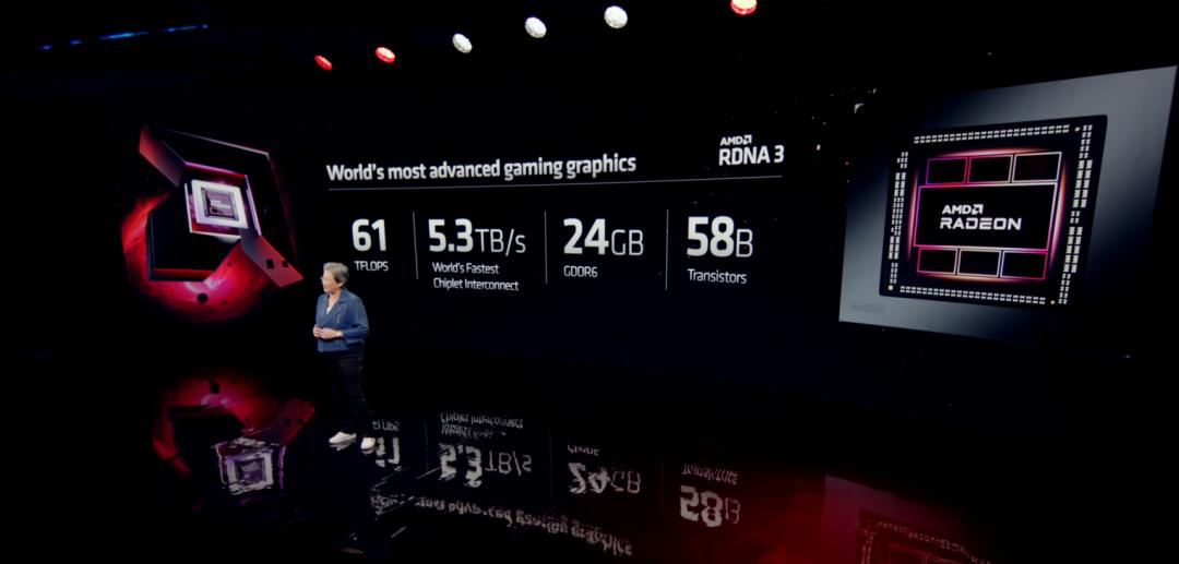 苏姿丰特别强调说,RDNA3是全球第一款“chiplet”游戏GPU。chiplet是像搭乐高积木一样,将一组有不同特定功能的独立芯片裸片分别制造,然后封装集成在一起,从而实现更具弹性的设计、更高良率和更低成本。