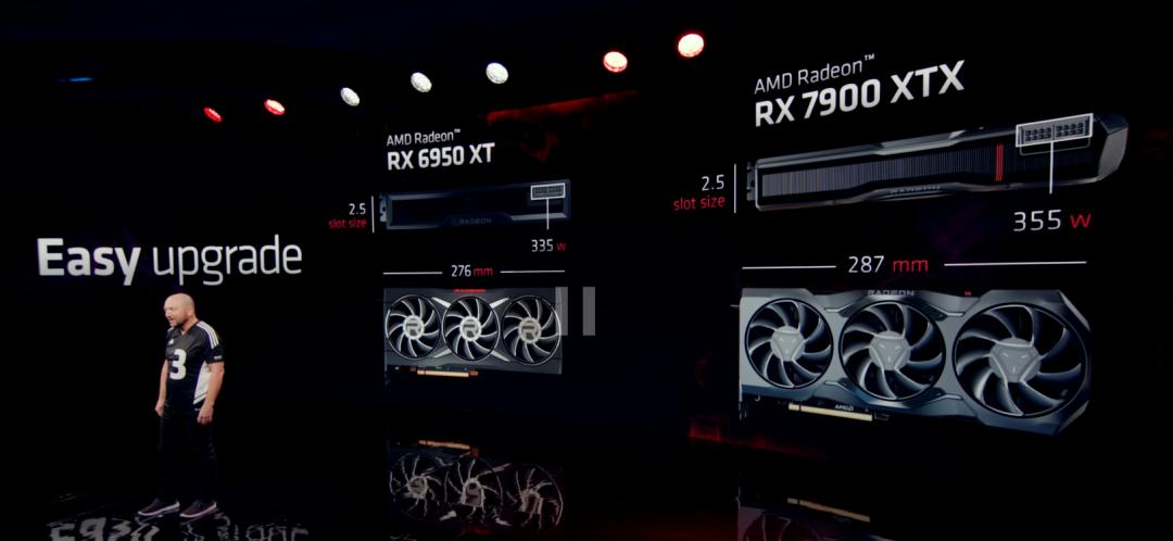 此次AMD RX 7000系列两款新产品,在性能、能效比方面的提升幅度都比较明显,不过AMD在发布会上并没有将新品与英伟达最新的RTX 40系列作横向对比,因此实际性能差距,还有待后续公布。