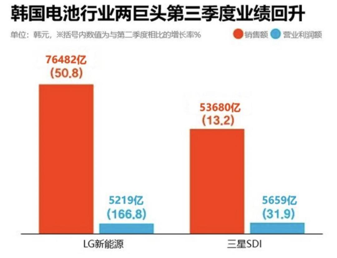 随着全球电动汽车市场的迅速增长,韩国电池行业迎来旺季。LG新能源与三星SDI在今年第三季度创下了历史最高经营业绩,SK ON也将大幅减少了亏损幅度。
