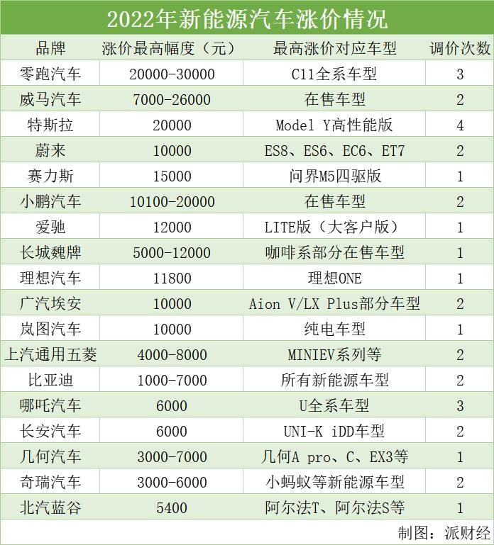 因此,截至目前已有28家汽车公司宣布上调新能源汽车价格,过半数公司最高涨价达万元,并且多次宣布涨价。其中造车新势力零跑汽车宣布涨价2至3万元,特斯拉年内已进行5次调价。