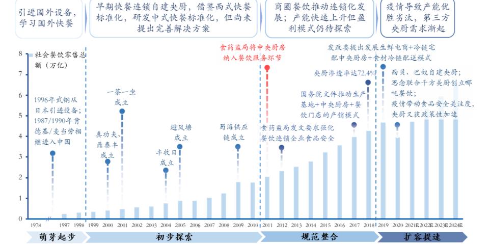 第一阶段:1987/1990年肯德基/麦当劳相继进入中国市场,国内餐饮开始学习其优秀经验,纷纷引进国外设备。