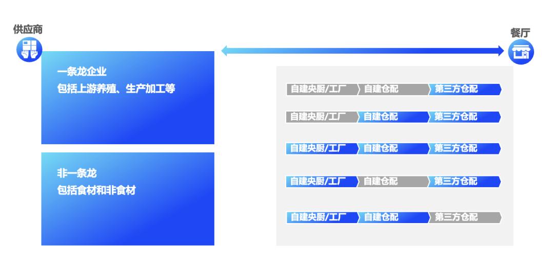 目前市场可将餐饮供应链粗略分为两种,一是传统的供应链部门,二是成熟的供应链公司。