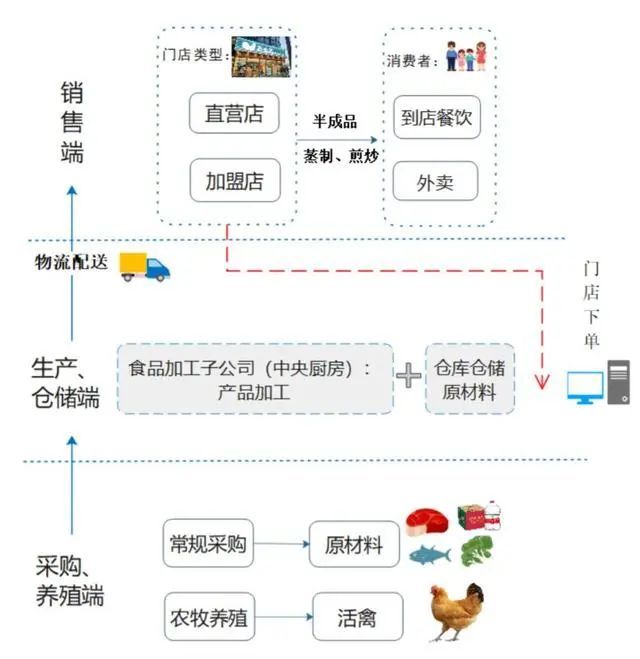 ② 自建供应链体系:从源头到餐桌的全产业链,具备“集中采购、中央厨房、仓储管理、物流运输”等多种运营模式。