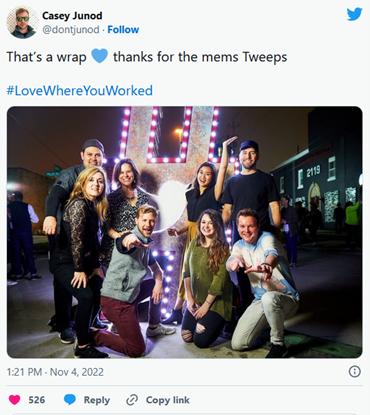 周五上午9点,“约定时间”还没到,Twitter上的推文如潮水般涌入该平台,许多推特员工使用# LoveWhere YouWork和# OneTeam 的标签,让其他人知道他们已经被解雇了。而“敬礼”和“蓝心”的emoji表情,也被推特员工广泛使用,成为非官方的一种道别符号。