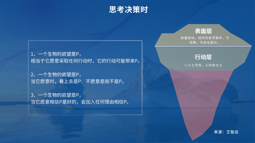 欲望属于冰山横向部分,在表面事件范围内驱动,事件按照什么方向做,做到什么程度,都会受到一定框架影响。