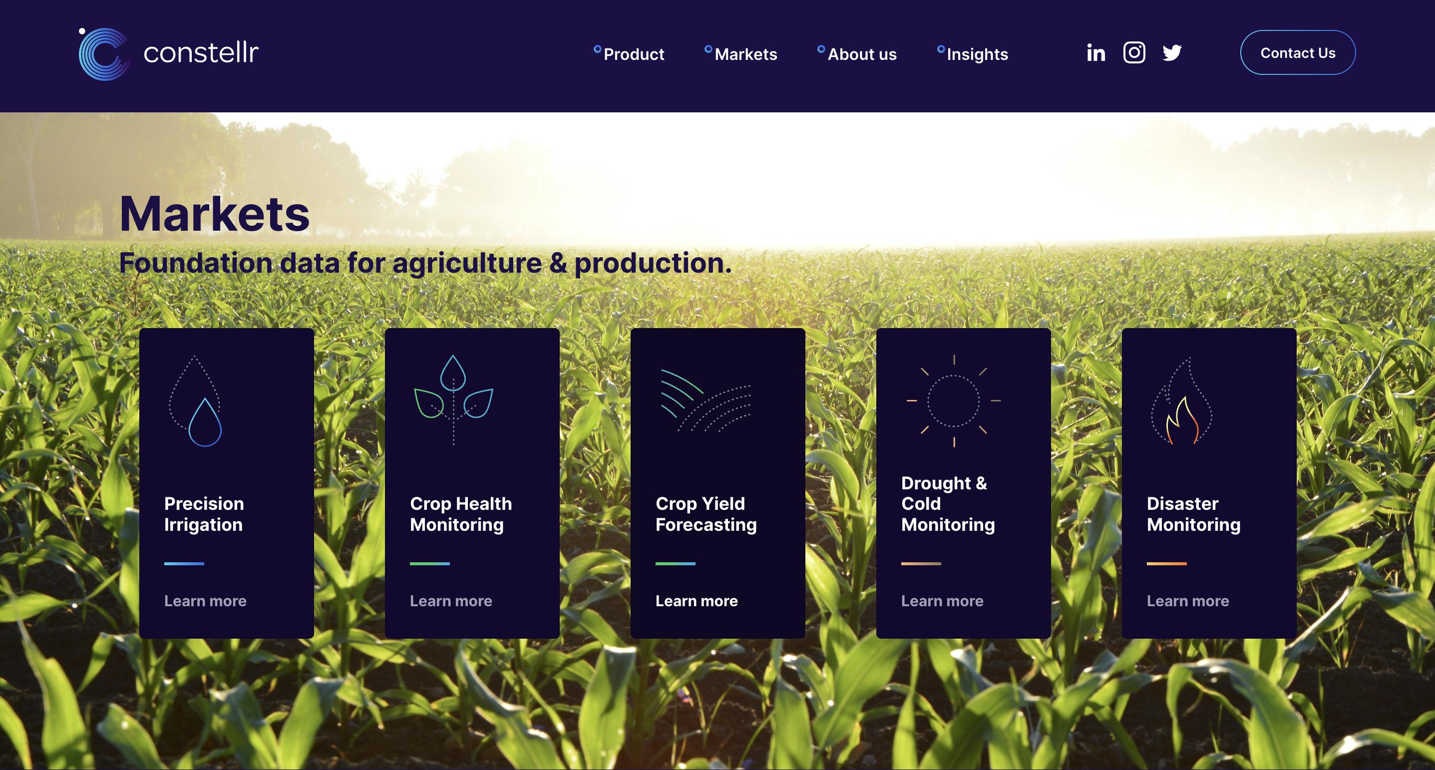 「Constellr」是利用热红外微型卫星进行全球土地表面温度监测的市场参与者之一。据该公司官网介绍,“我们提供每日、区域性的LST图像,为高精度农业和高度依赖温度的农作物提供健康管理、产量预测和可持续资源管理等优化方案”。