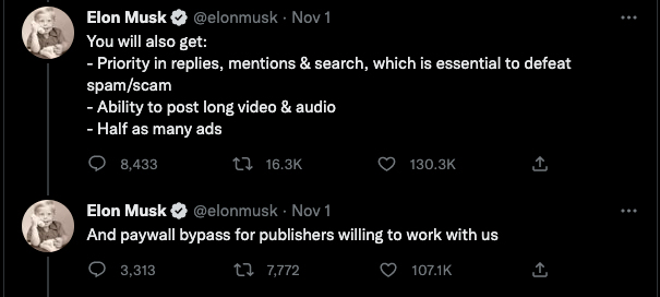 我们从推特会议室中得到的最具体的消息是 Twitter Blue 订阅服务将会推出,每月 8 美元。其功能包括以下内容。