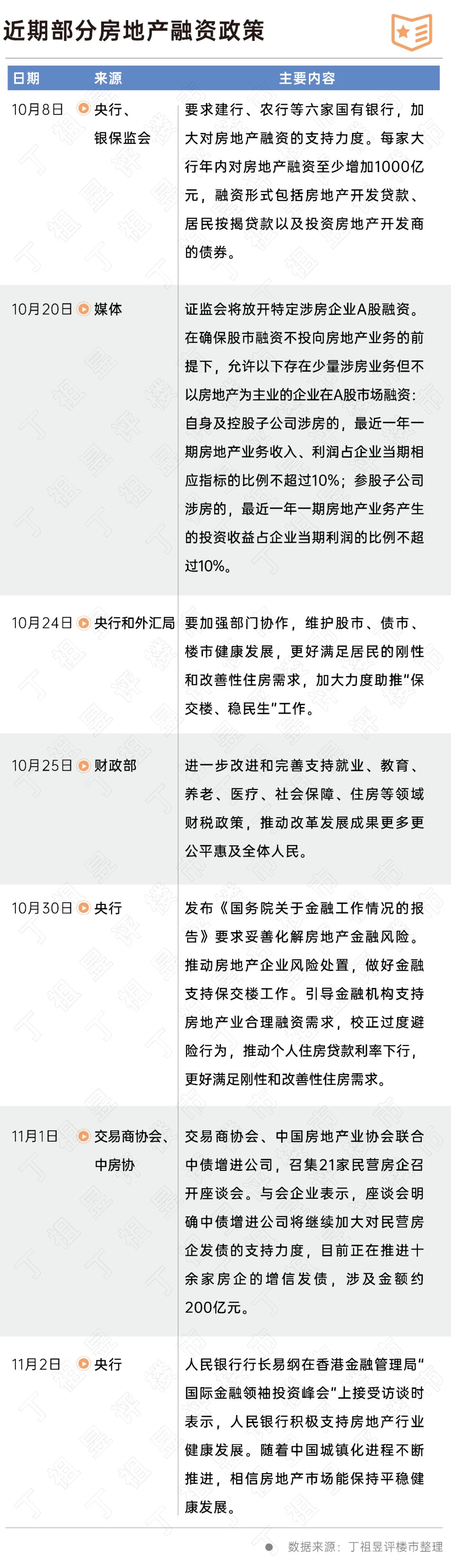 10月至今,融资政策暖风频吹,央行、证监会、银保监会、交易商协会等纷纷下场支持房地产融资。