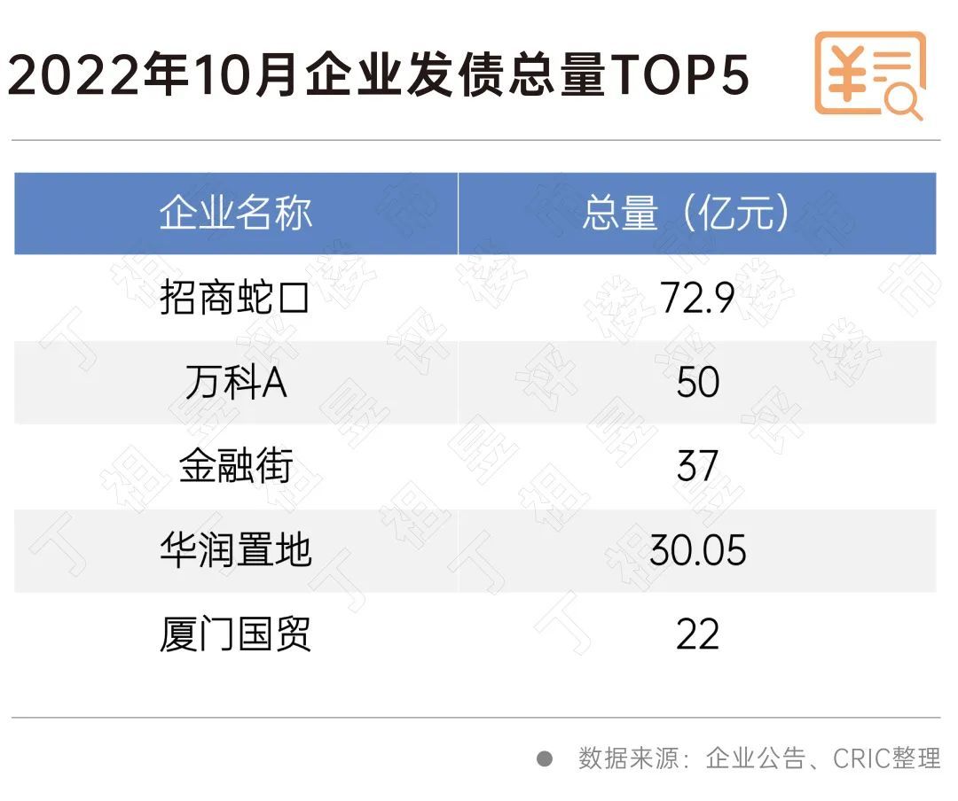 然而据CRIC数据显示,10月融资总量环比大幅减少,甚至首次出现单月没有房企境外融资的情况。境内发债主体仍然是集中在招商蛇口、华润置地等国企央企以及万科这种财务状况较好的民营房企。
