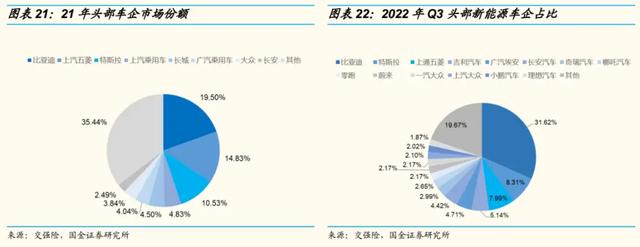 比亚迪作为新能源市场当之无愧的魁首,在国内市场回暖、国外需求加大的行业机遇中占尽优势,吃到最大的红利。与2021年相比,2022年Q3比亚迪的市占率提升了12.1%,相比比亚迪独坐鳌头乘东风起,下面品牌业绩虽有起色,但境况并不乐观。