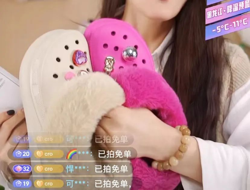 杨幂也曾带着Crocs上李佳琦直播间,一时把洞洞鞋“穿”成了爆品。