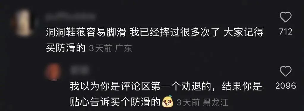 面对有缺点的洞洞鞋,总能找到N种借口来包容它: “穿洞洞鞋太滑了,把我摔够呛……一定记得买个防滑的!!!”