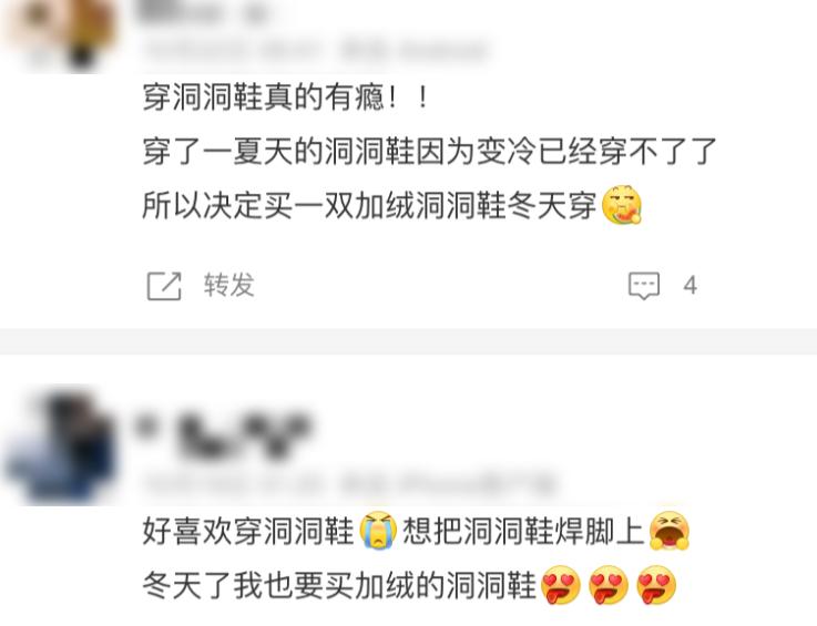 不少“重度患者”甚至表示,每当脱下洞洞鞋,便会感到浑身难受。