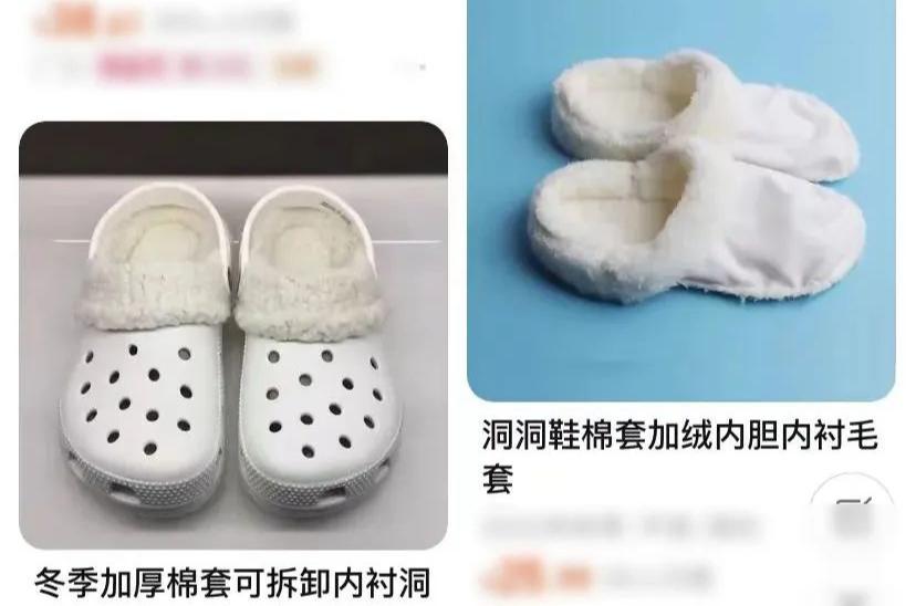 比如,创意:觉得 穿袜子再穿 洞洞鞋丑? 你可以试试毛绒洞洞鞋, 羽绒洞洞鞋,或者……雪地洞洞鞋。