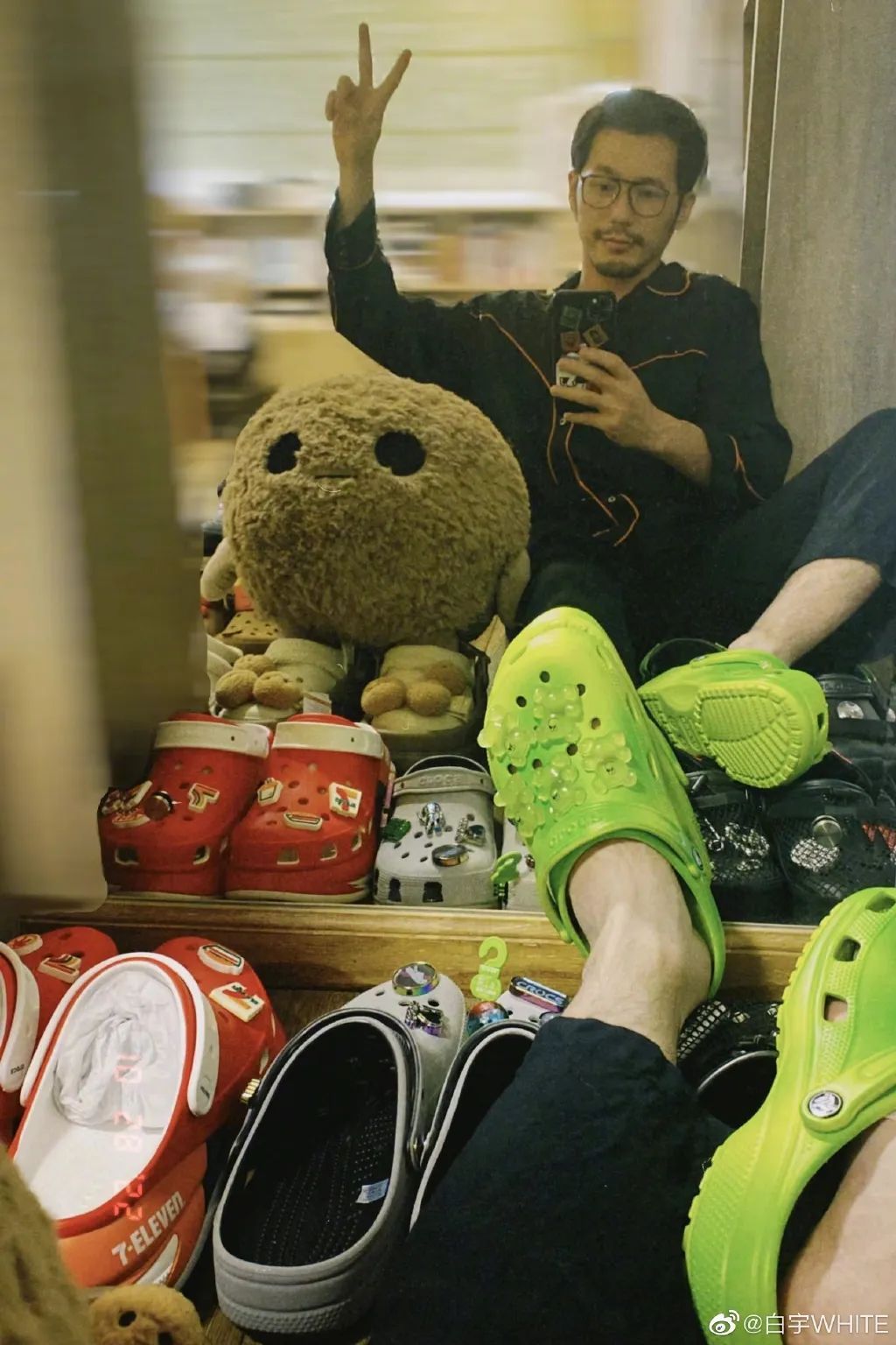 同样以白宇为例,甚至给玩偶也安排了洞洞鞋