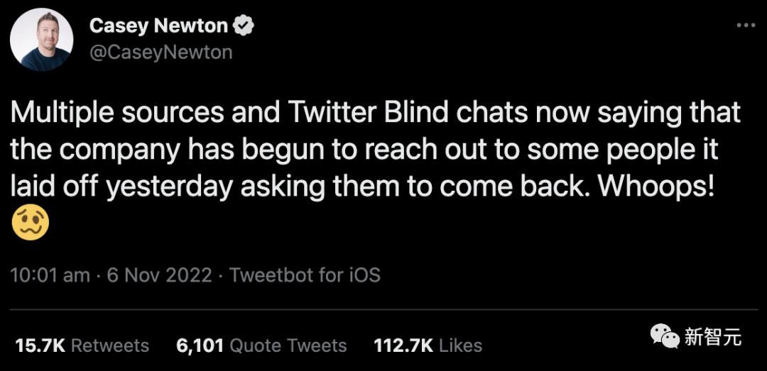 是的,有一些人被「错误」地解雇了。据说,推特的管理层在构建马斯克设想的新功能时,发现某些员工的工作经验是不可或缺的。