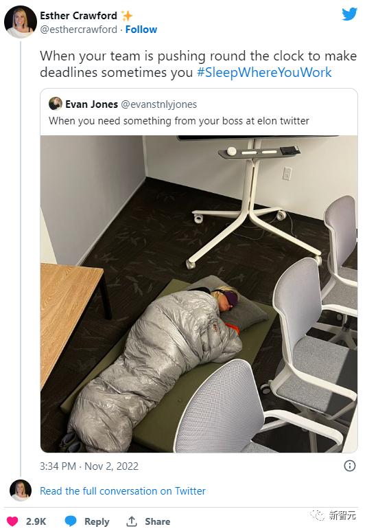 他表示,在推特的工作的好处是能为马斯克工作,坏处就是要做打工机器人。而最大的「成就感」,就是每周7天24小时在办公室里工作和睡觉,然后交付项目。