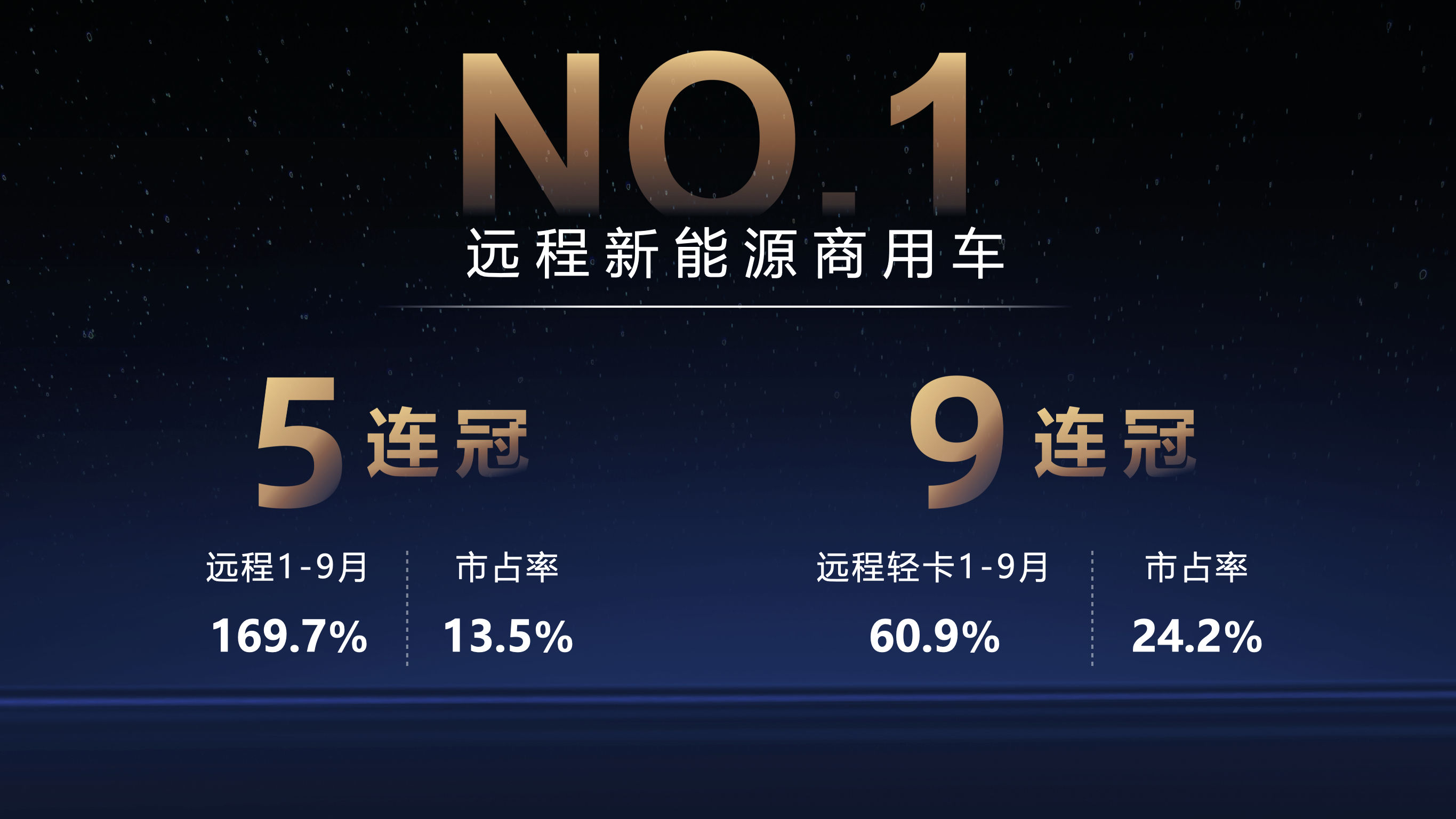 在产品市场层面,今年1-9月,远程新能源商用车总体销量同比增长169.7%,总体累计销量行业第一。细分领域,远程新能源轻卡1-9月累计销量同比增长60.9%,市占24.2%位列第一,实现连续9个月行业第一。