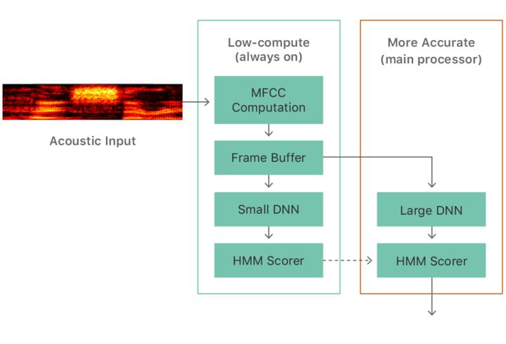 Hey Siri 唤醒的工作流程,绿色方框的即为 AOP 处理器