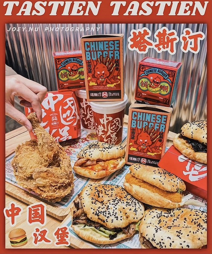 2018年,塔斯汀推出了一种“现烤堡胚”,在门店明档操作间内展示手擀面团、现场烘烤的制作过程。在小红书等社交平台上,消费者形容这种汉堡组合的口感“类似于手抓饼加炸鸡”。