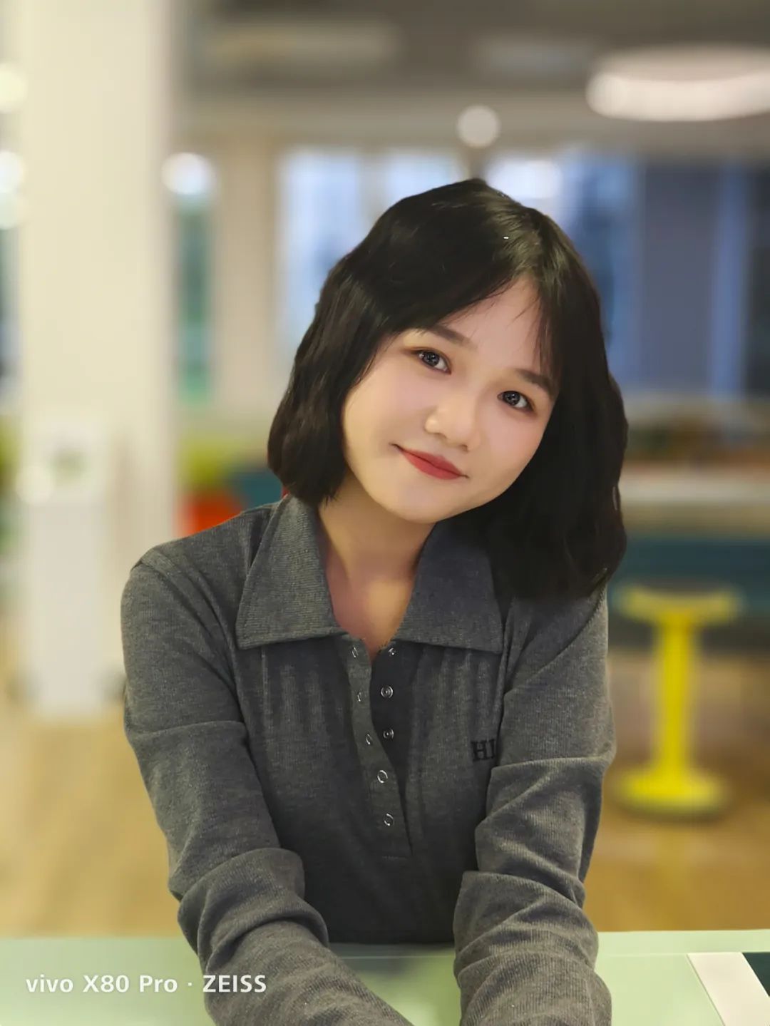 模特小姐姐主观地认为vivo X80 Pro的人像样张表现更好,原因在于人像肤色、整体色调和背景虚化的表现均胜出一筹,虽然有进行处理,但却不易发现处理的痕迹。